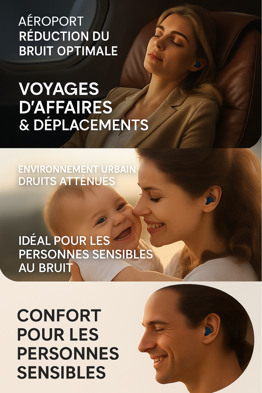 Bouchons premium 27 dB - Travail, Sport, Sommeil, Voyage